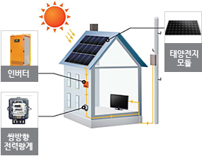 신재생에너지원을 주택에 설치할 경우 설비의 일부를 정부가 보조하는 사업입니다. 발생된 전기는 자가용으로 우선 사용되며, 남은 전력은 한국전력공사로 역전송하여 역전송 된 만큼 전기료 사용량이 차감되어 전기요금 절약 효과가 있습니다.정부는 주택지원사업 등 정책을 통해 일반주택 및 공동주택에 설치 시 설비를 일부 지원하여 설치비 부담을 줄일 수 있습니다.